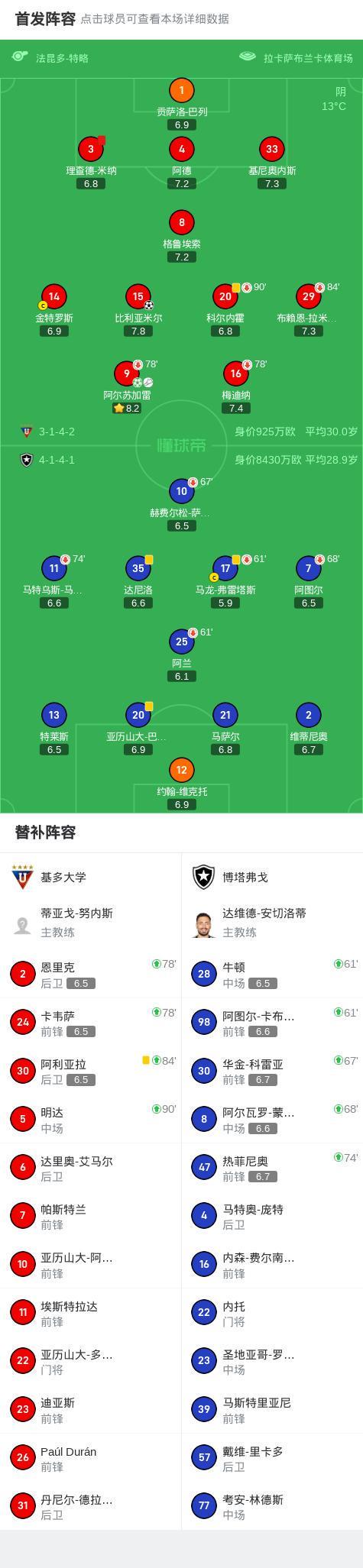 第7分钟,基多大学球员阿尔苏加雷助攻比利亚米尔打入一球。