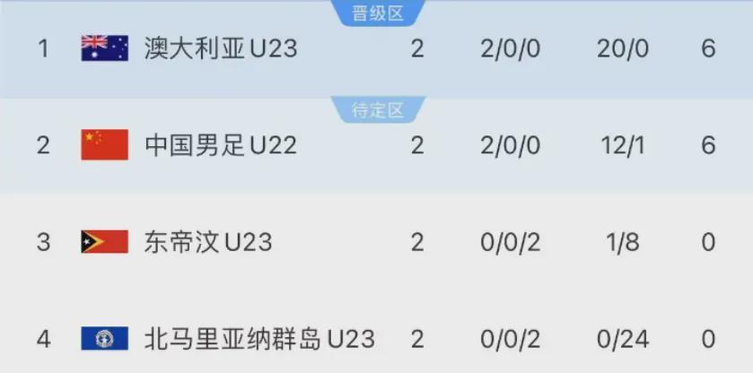 在于大宝、黄博文的指导下,中国队前面2轮比赛豪取2连胜,分别2-1暴击东帝汶队,10-0血洗北马里亚纳群岛队。这2场胜利,也为中国队的出线形势奠定巨大的优势。