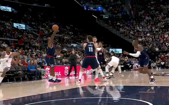 虎扑04月09日讯 NBA常规赛,快船对阵雷霆的比赛正在进行中。第三节比赛中,多尔特倒地救球,哈滕脑后妙传助攻杰威上篮打进。来源:虎扑 虎扑04月09日讯 NBA常规赛,快船对阵雷霆的比赛正在进行中。第三节比赛中,多尔特倒地救球,哈滕脑后妙传助攻杰威上篮打进。来源:虎扑...